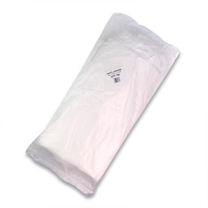 1 x Pack of 100 White Aprons (16 Micron, NHS Spec, Flat Pack)
